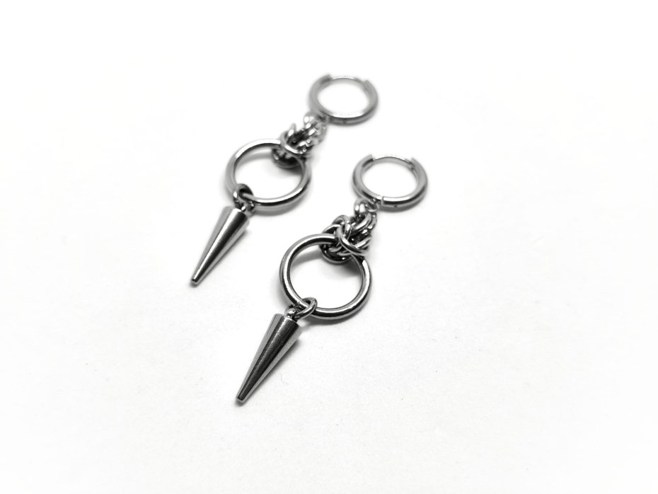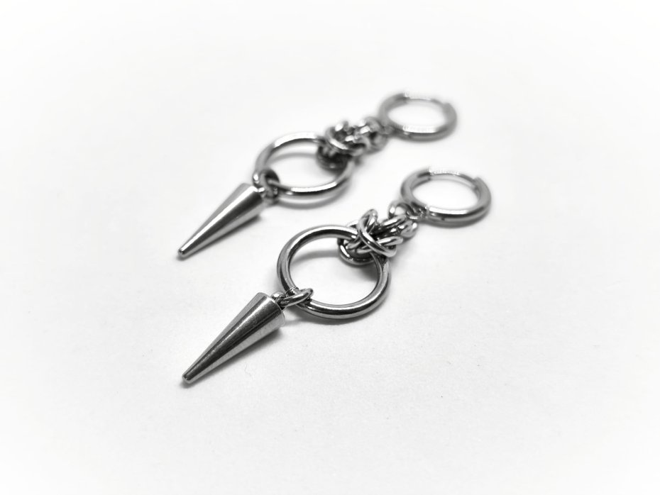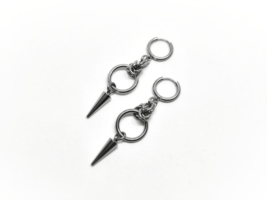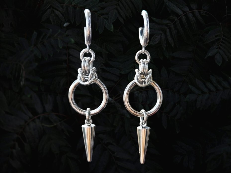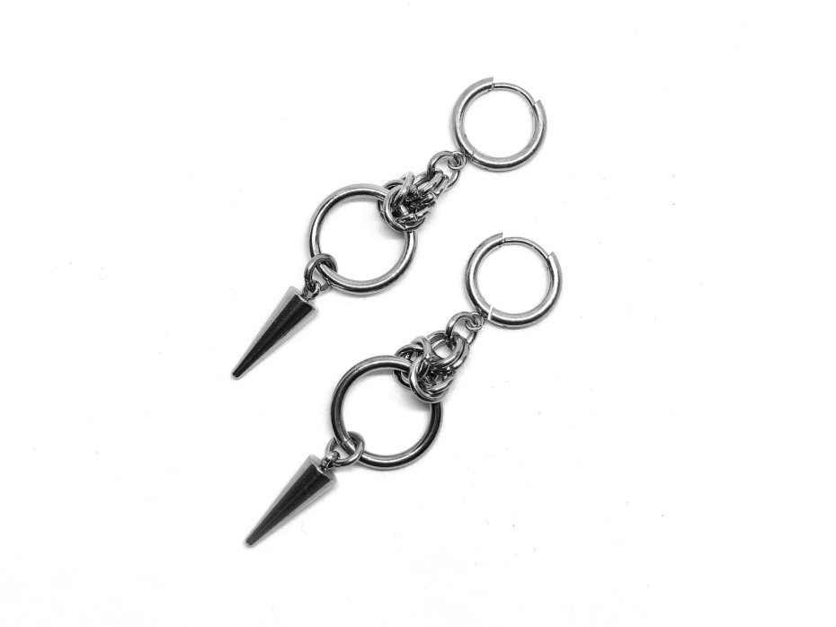 chainmaille, kolczyki z kolcem, ze szpikulcem, długie wiszące, stal chirurgiczna, gothic, punk, cyber goth, industrial, vampire, alternatywne, hipoalergiczne, wodoodporne, na koncert, festiwalowe, biżuteria kolczugowa, biżuteria mroczna, biżuteria alt, biżuteria punk, biżuteria cyber
