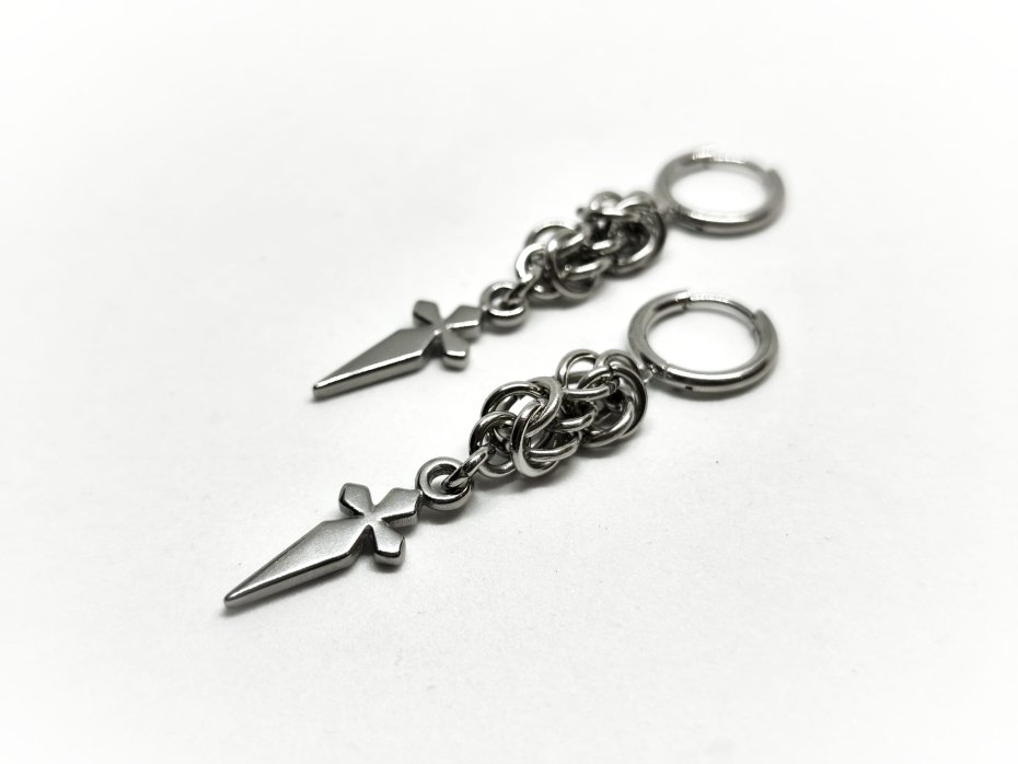 Kolczyki chainmaille, z mieczem, ze sztyletem, długie wiszące, stal chirurgiczna, gothic, punk, vampire, witchy, alternatywne, hipoalergiczne, wodoodporne, na koncert, festiwalowe, biżuteria kolczugowa, biżuteria mroczna, biżuteria alt, biżuteria gothic, biżuteria punk, biżuteria vampire