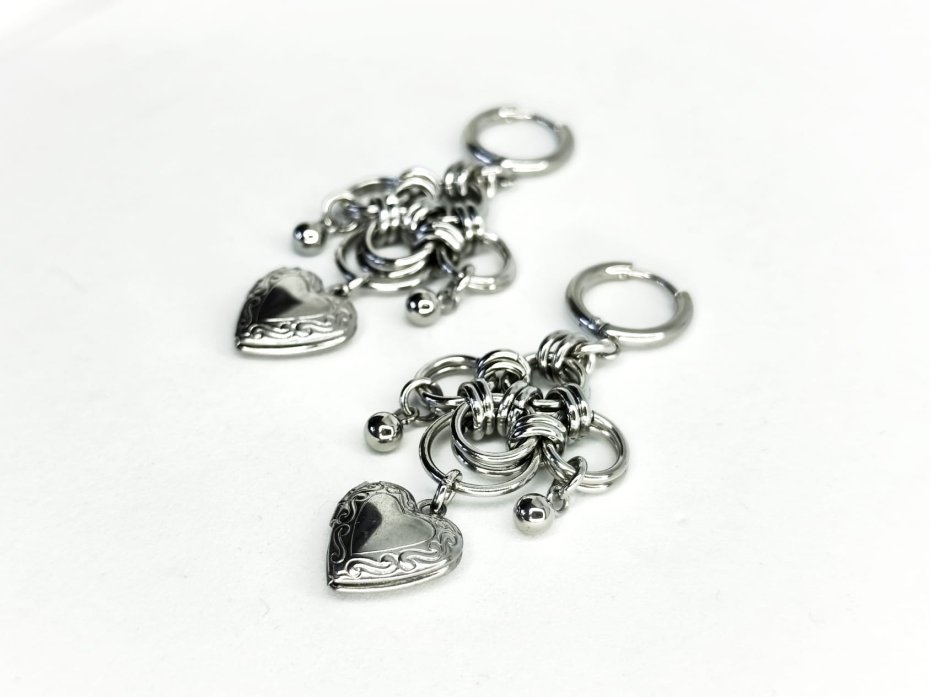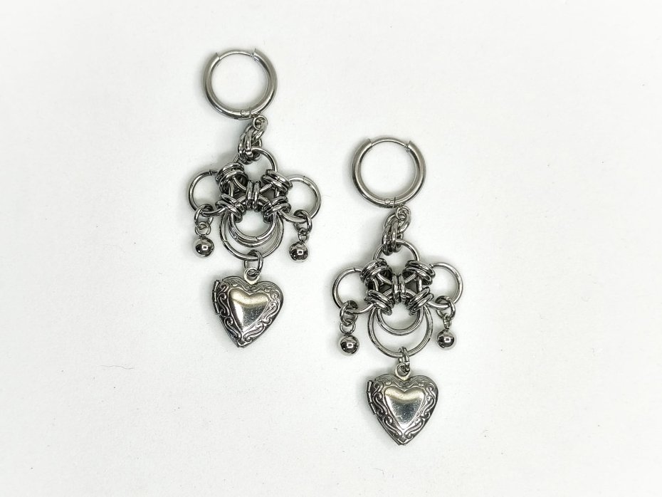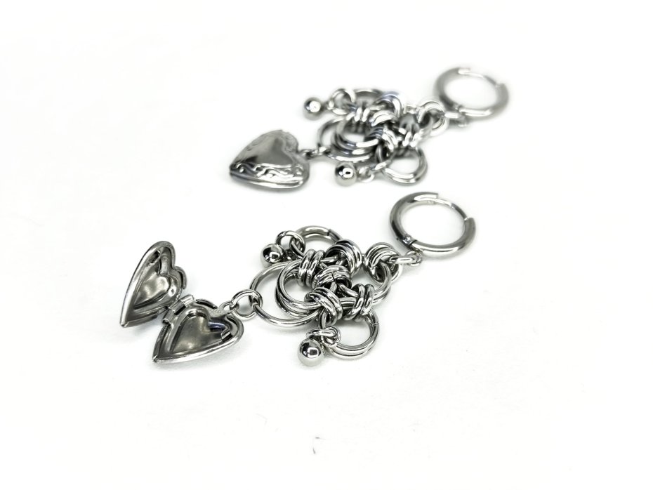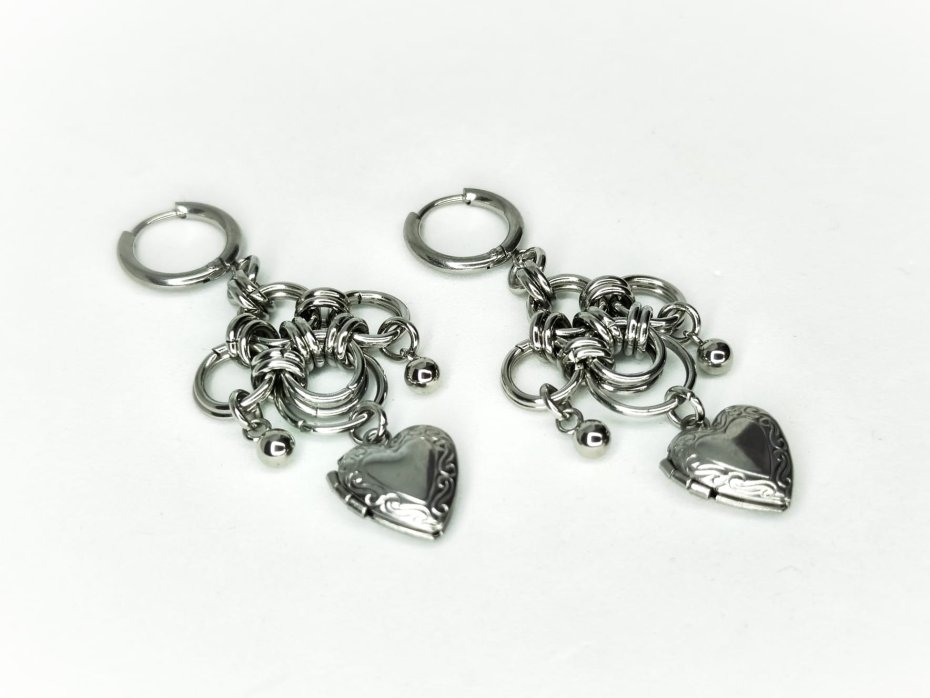 chainmaille, z serduszkiem,gothic,punk,vampire,witchy,stal chirurgiczna, kolczyki z locketem,dark romance, alternatywne, custom, hipoalergiczne, wodoodporne, biżuteria kolczugowa, biżuteria mroczna, biżuteria alt, biżuteria gothic, biżuteria z serduszkiem