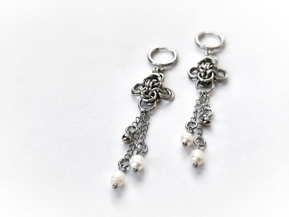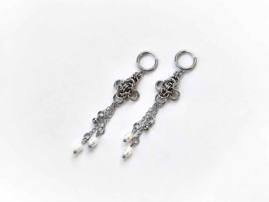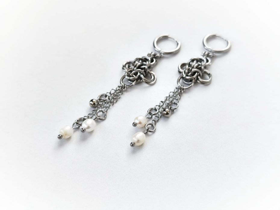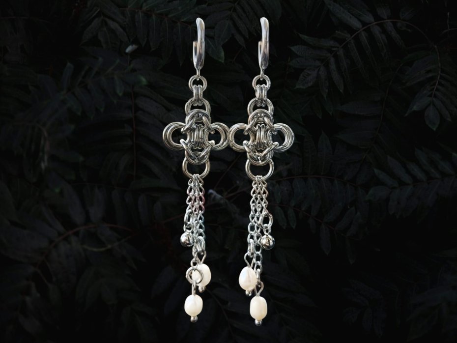 chainmaille, z perłami naturalnymi, z łańcuszkami, długie wiszące, stal chirurgiczna, gothic, witchy, dark fairycore, dark romance, whimsigoth, dark academia, alternatywne, hipoalergiczne, wodoodporne, na koncert, festiwalowe, biżuteria kolczugowa, biżuteria mroczna, biżuteria alt, biżuteria gothic, biżuteria witchy, biżuteria dark fairycore, biżuteria z perłami