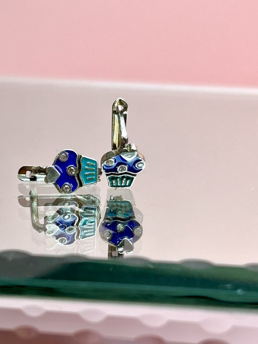 Jagodowe muffinki ze srebra próby 0,925. Ozdobione emalią jubilerską.