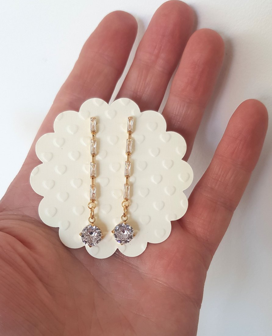 Wykonane z mosiądzu platerowanego złotem i cyrkonii.