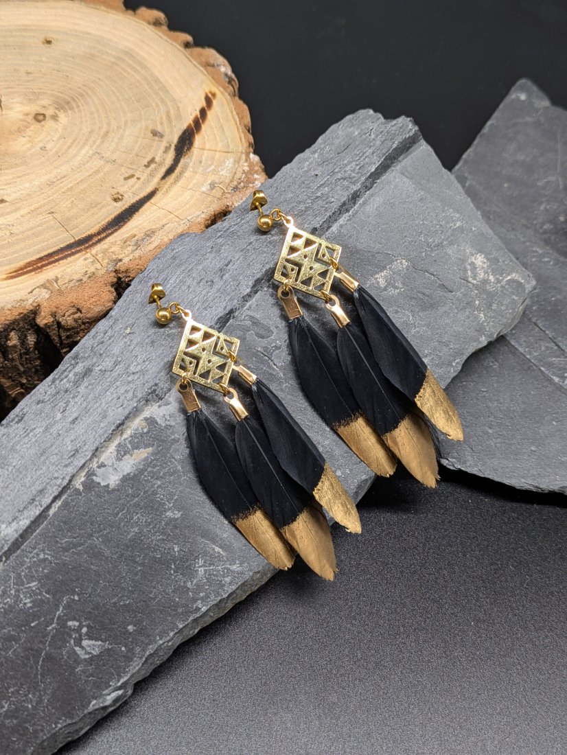 5.  > Kolczyki czarne pióra złoto boho nowoczesne (nr 7091403)