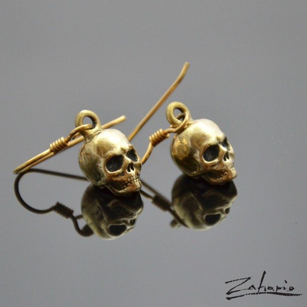 Kolczyki w kształcie czaszek, w całości wykonane z brązu. Produkt ręcznie robiony. Żłobienia i detale tworzone pod lupą.