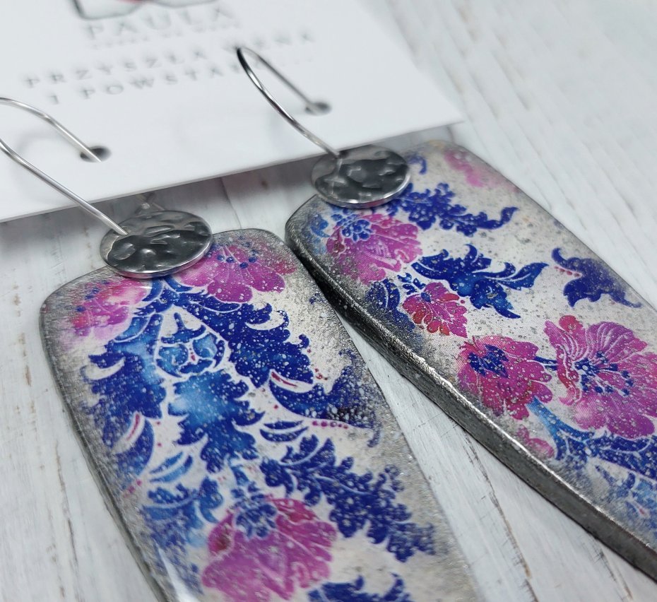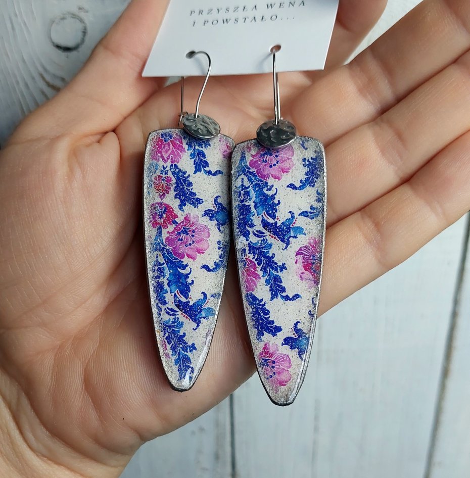 Wszystkie moje kolczyki decoupage wyglądają dobrze zarówno do zimowego swetra, białej koszuli jak i do letniej sukienki, robią efekt WOW. Ten wzór świetnie wygląda z jeansami i białą koszulą bo nadaje charakteru i elegancji.