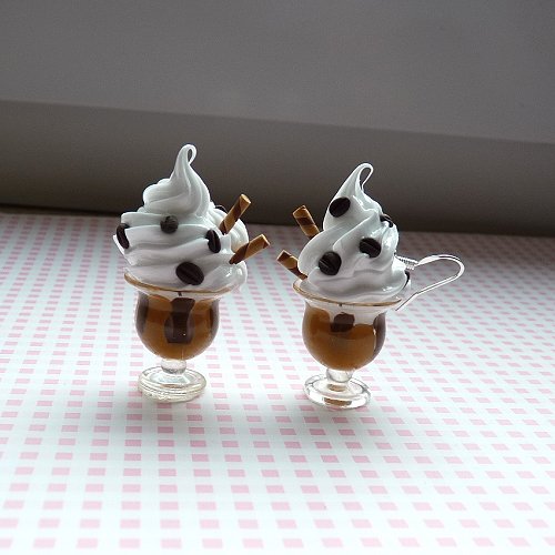Urocze kolczyki - miniaturowe pucharki pełne pysznego deseru kawowego z bitą śmietaną:) długość całkowita kolczyka: ok. 4,5cm. Wysyłam ozdobnie zapakowane;)
