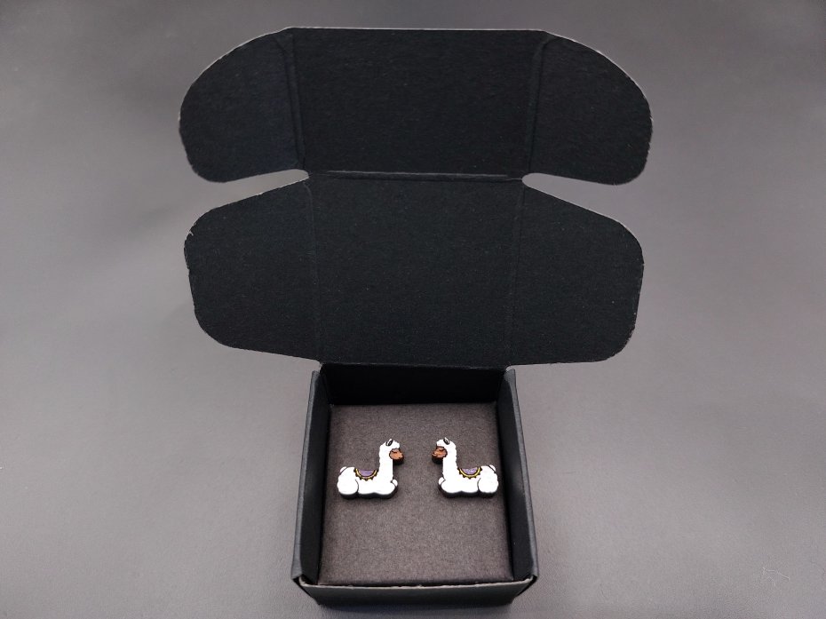 Kolczyki pakuję w kartonowe pudełeczko widoczne na zdjęciu.