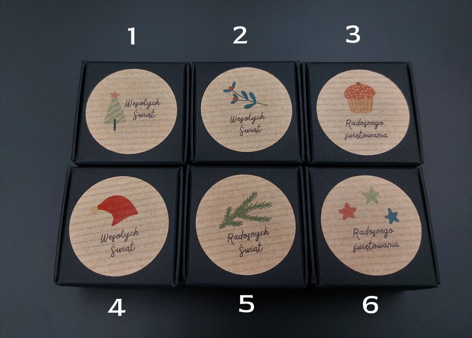 Specjalnie na Święta Bożego Narodzenia jest możliwość wyboru pudełeczka ze specjalną świąteczną naklejką, zamiast naklejki z moim logo.
