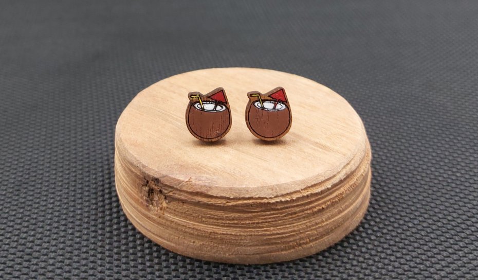 Każda para kolczyków powstaje z innego kawałka drewna oraz jest ręcznie malowana przeze mnie, dlatego występują minimalne różnice w ich wyglądzie. Nie ma dwóch identycznych par. Dodatkowo kolory widoczne na zdjęciach mogą się nieco różnić od rzeczywistych ze względu na parametry ustawień monitora.
