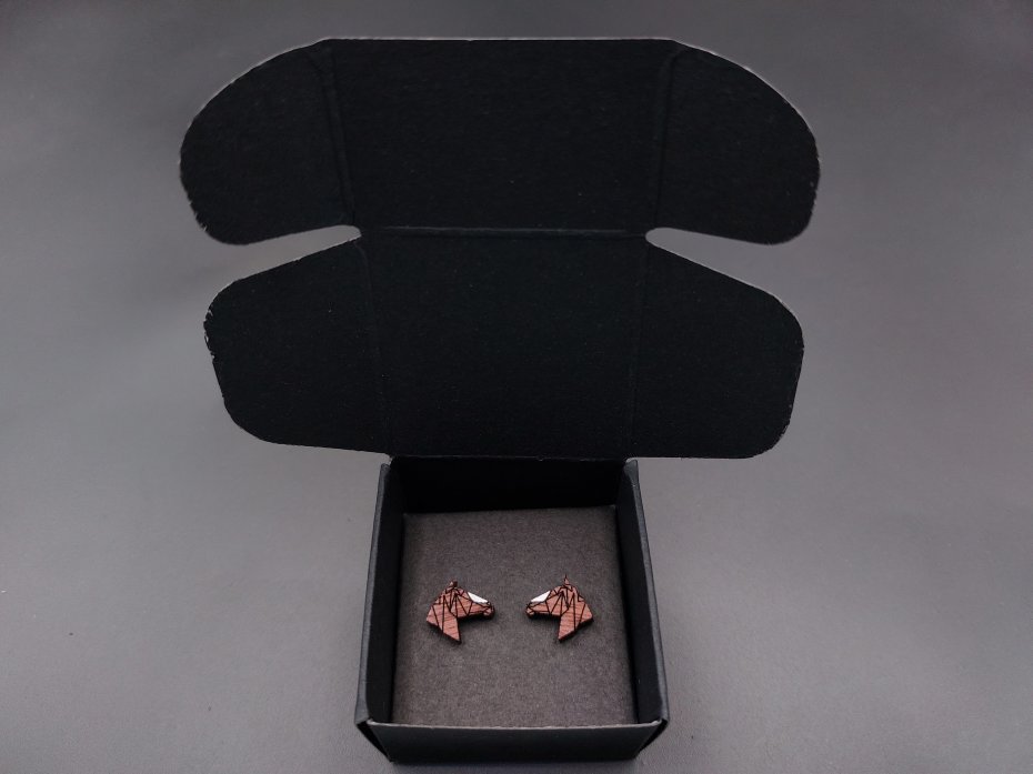 Kolczyki pakuję w kartonowe pudełeczko widoczne na zdjęciu.