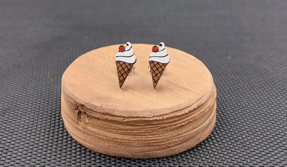 Każda para kolczyków powstaje z innego kawałka drewna oraz jest ręcznie malowana przeze mnie, dlatego występują minimalne różnice w ich wyglądzie. Nie ma dwóch identycznych par. Dodatkowo kolory widoczne na zdjęciach mogą się nieco różnić od rzeczywistych ze względu na parametry ustawień monitora.