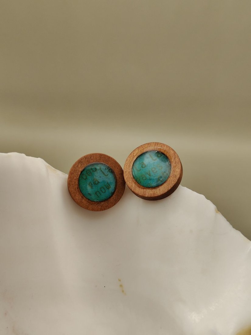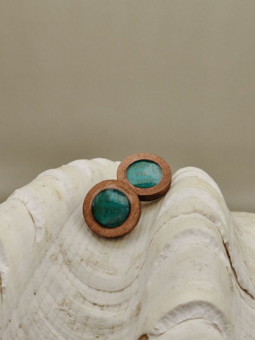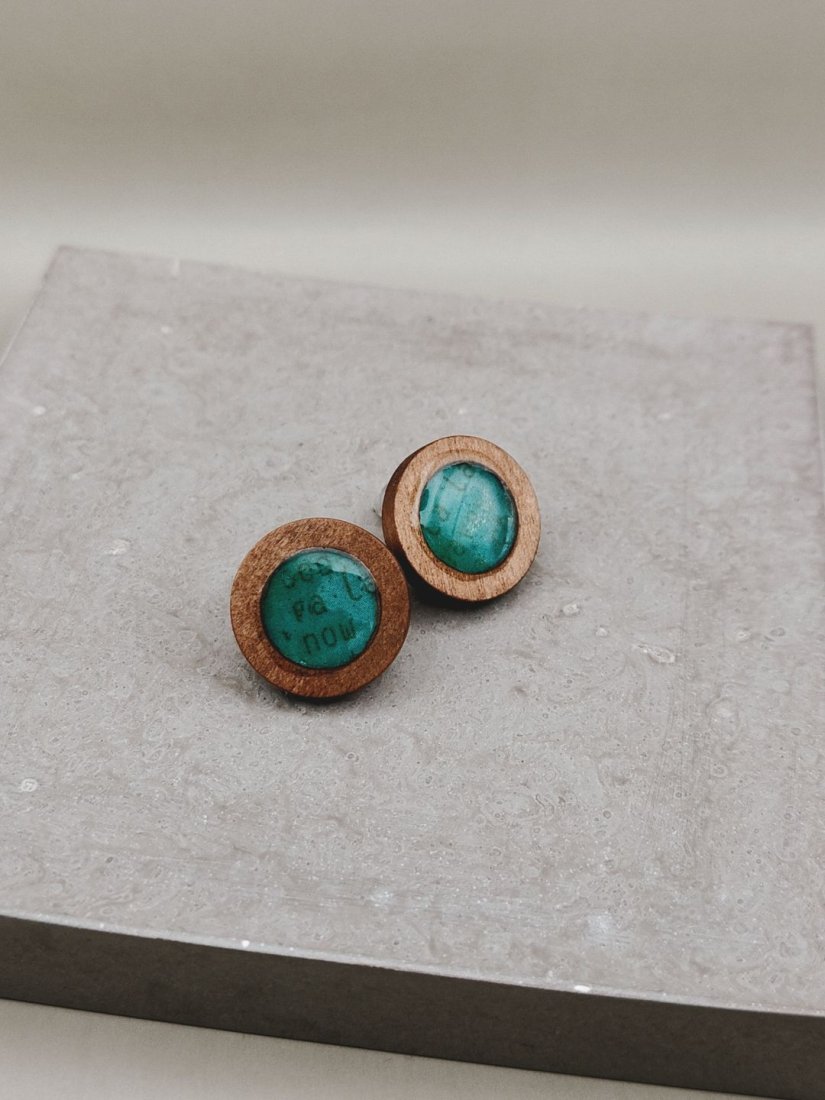 Wyjątkowe kolczyki wykonane z naturalnego drewna, które zachwycają ciepłym odcieniem i lekką formą. Centralnym elementem jest turkusowa wstawka z delikatnym, subtelnym motywem, nadająca całości artystycznego i niepowtarzalnego charakteru. To biżuteria stworzona dla osób ceniących naturę, rękodzieło i oryginalne dodatki, które podkreślają styl bez nadmiernej ekstrawagancji. Doskonale sprawdzą się zarówno na co dzień, jak i jako akcent uzupełniający bardziej elegancką stylizację.