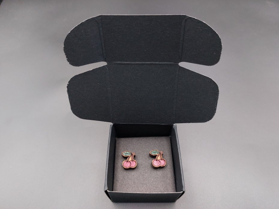 Kolczyki pakuję w kartonowe pudełeczko widoczne na zdjęciu.