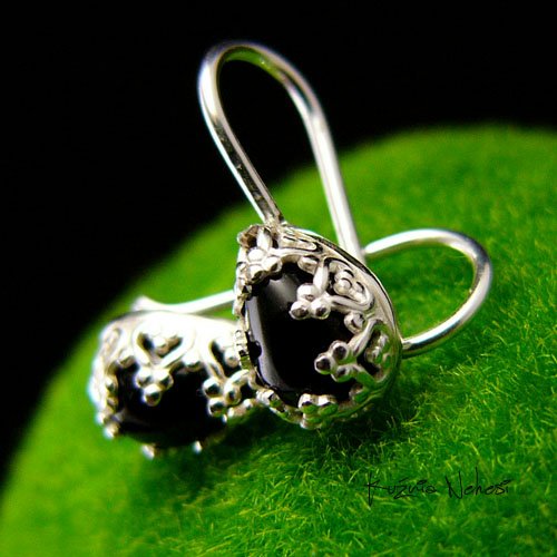 Kolczyki drobinki, niezwykle eleganckie. Wykonane ręcznie od podstaw ze srebra tradycyjną technika jubilerską oraz czarnych Onyksów - klasyka - wielkość - 19x6,5 mm.. Srebro zostało mocno wypolerowane na lustro. Kolczyki bardzo lubiane, minimalizm połączony z elegancją. © Nehesi Design