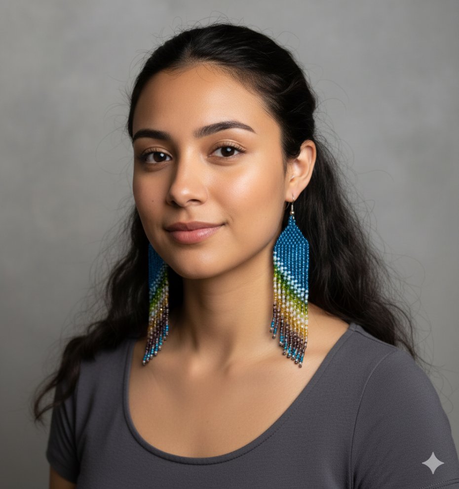 Unikalny design: Długie, kaskadowe frędzle wykonane z setek drobnych, precyzyjnie dobranych koralików.