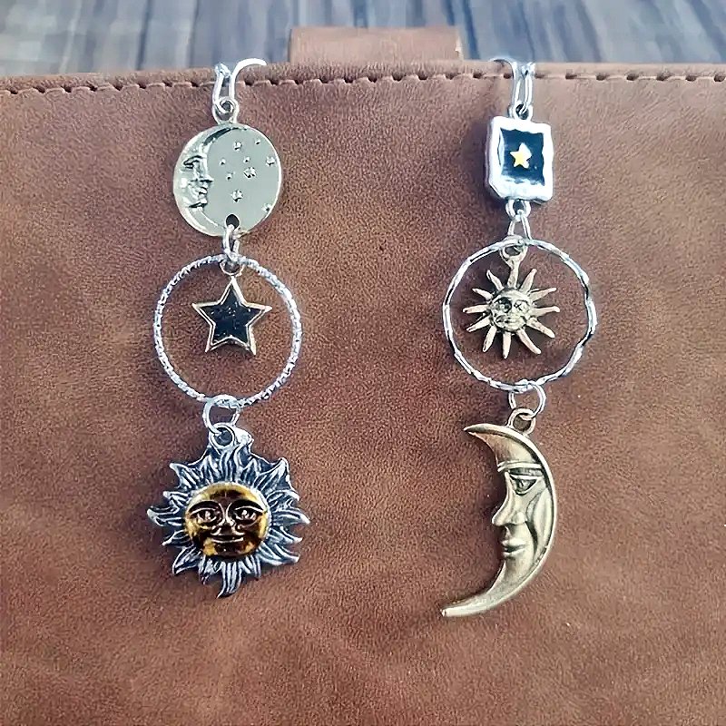 Piękne kolczyki dla miłośniczek klimatów etno i boho. Ciekawy kształt i forma, na pewno zwrócą na siebie uwagę! Kolczyki wykonane z różnych materiałów, elementów metalowych, miedzianych. Poczuj się jak bogini! Motywy słońca i księżyca