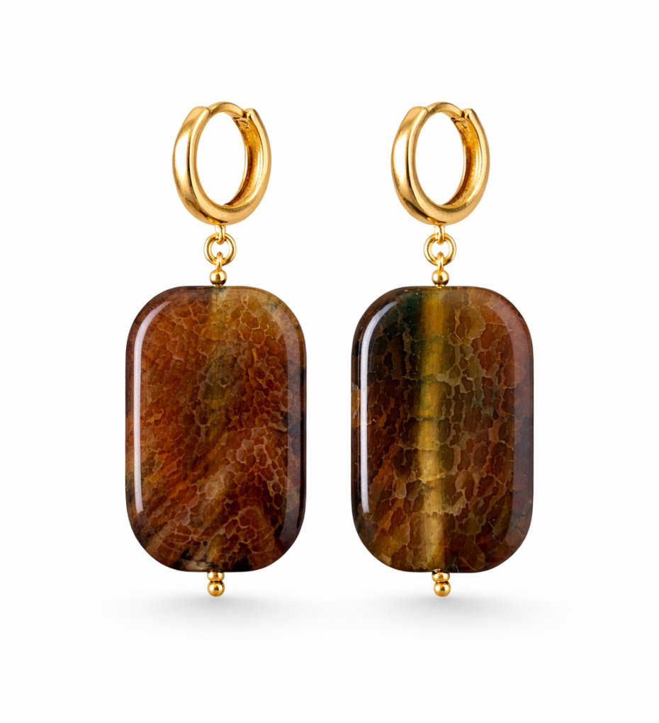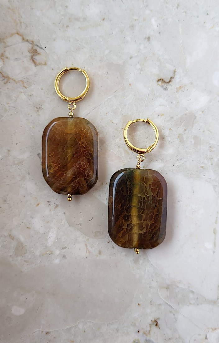 Kolczyki wykonane ręcznie, ze srebra próby 925 pokrytego 24K złotem oraz kamieni naturalnych - agatów mszystych.