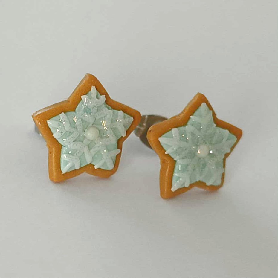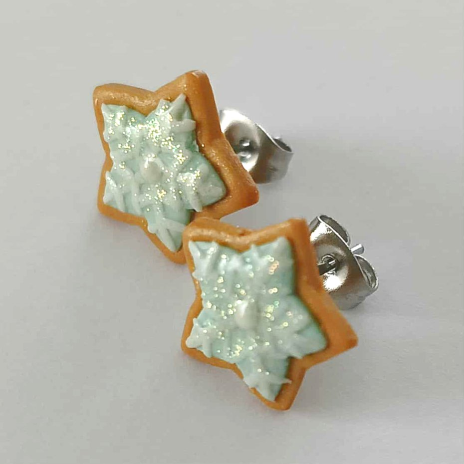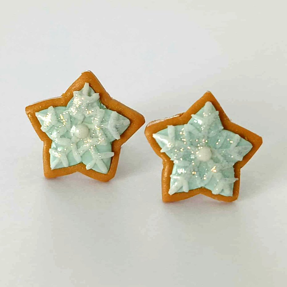 Te urocze kolczyki w kształcie gwiazdkowych ciasteczek ozdobionych miętowym lukrem i błyszczącą śnieżynką dodadzą Twojej stylizacji odrobiny świątecznego uroku.