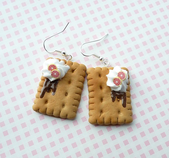 Urocze kolczyki - miniaturowe herbatniczki z bitą śmietaną i polewą czekoladową:) wymiary herbatnika: 3cmx2cm, długość kolczyka: 5cm. Wysyłam ozdobnie zapakowane;)