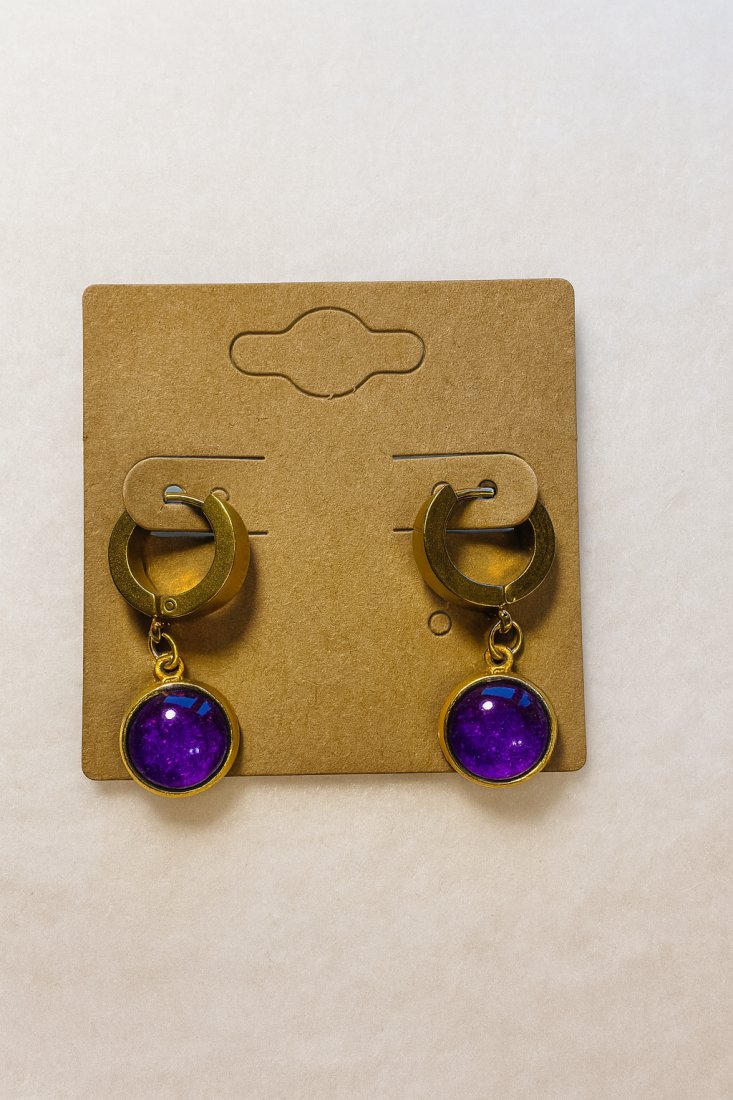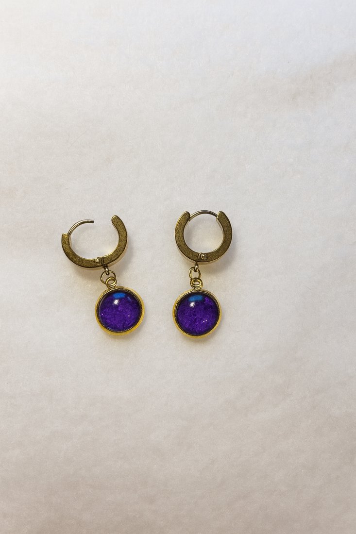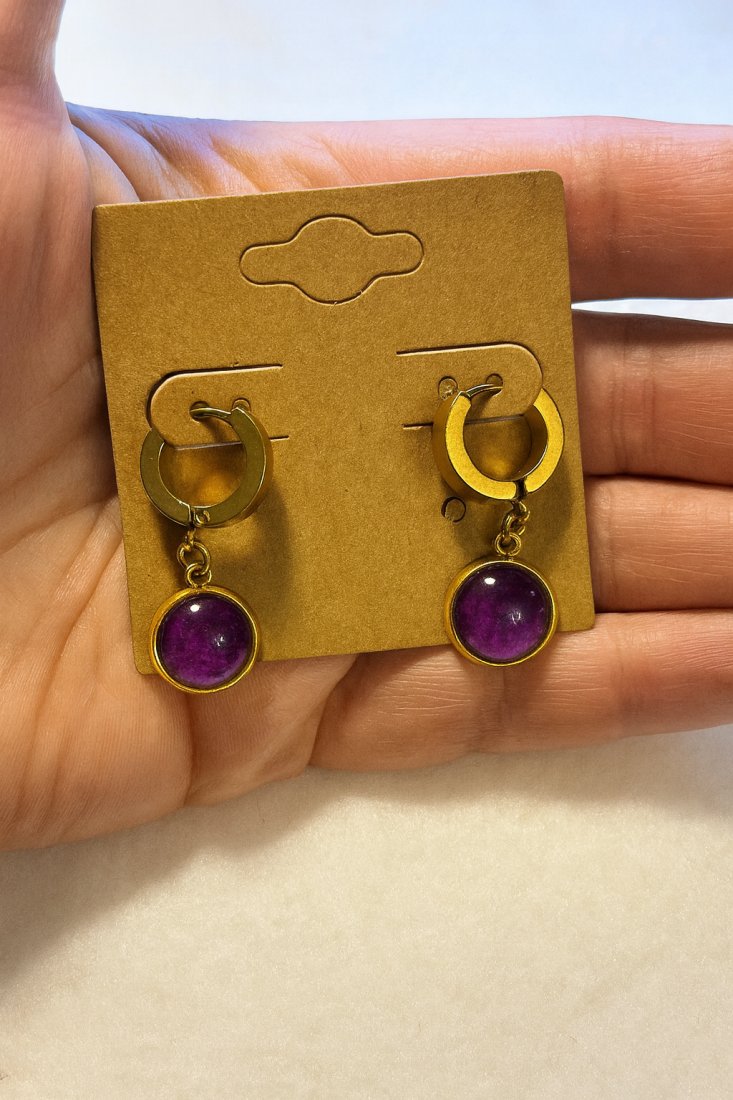 Złote kolczyki typu huggie z niewielkim oczkiem w odcieniu fioletu to subtelny akcent kolorystyczny, który łatwo wkomponować w codzienne stylizacje. Fiolet pozostaje stonowany i spokojny, dzięki czemu biżuteria zachowuje minimalistyczny charakter, typowy dla kolekcji ESSENCE.