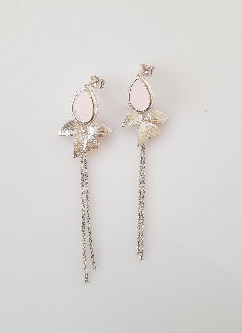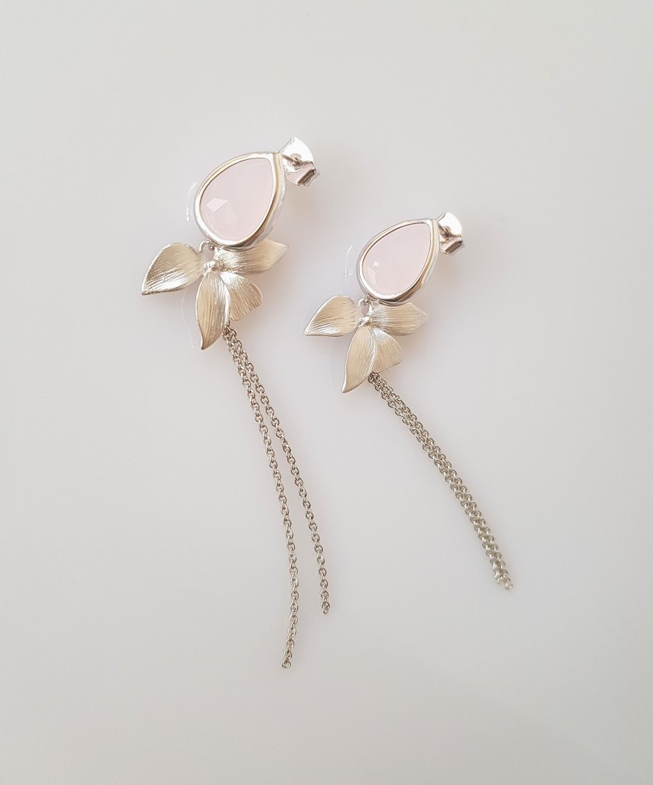 Eleganckie, romantyczne kolczyki sztyfty z listkami, łańcuszkami i kryształem.
