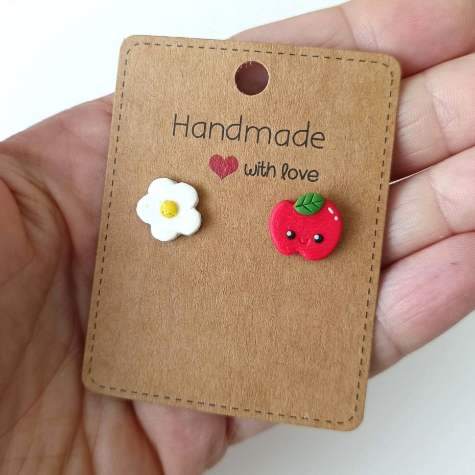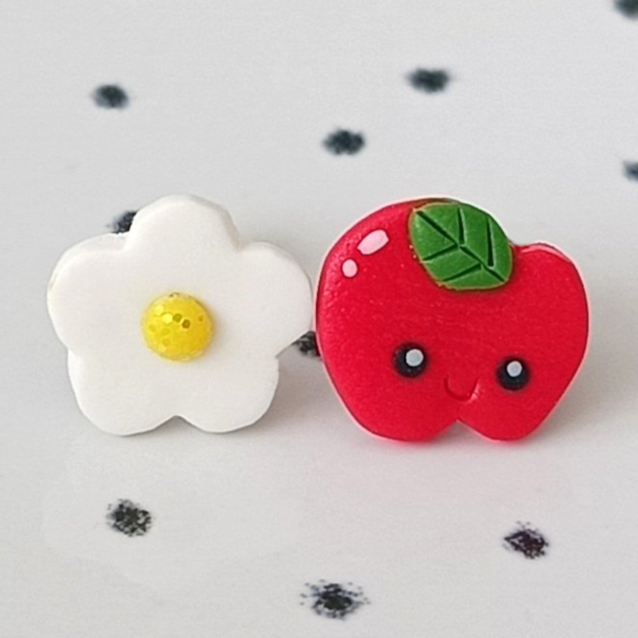 Urocze kolczyki z motywem jabłuszka i stokrotki to połączenie delikatności i zabawnego akcentu.