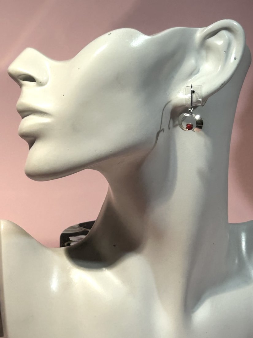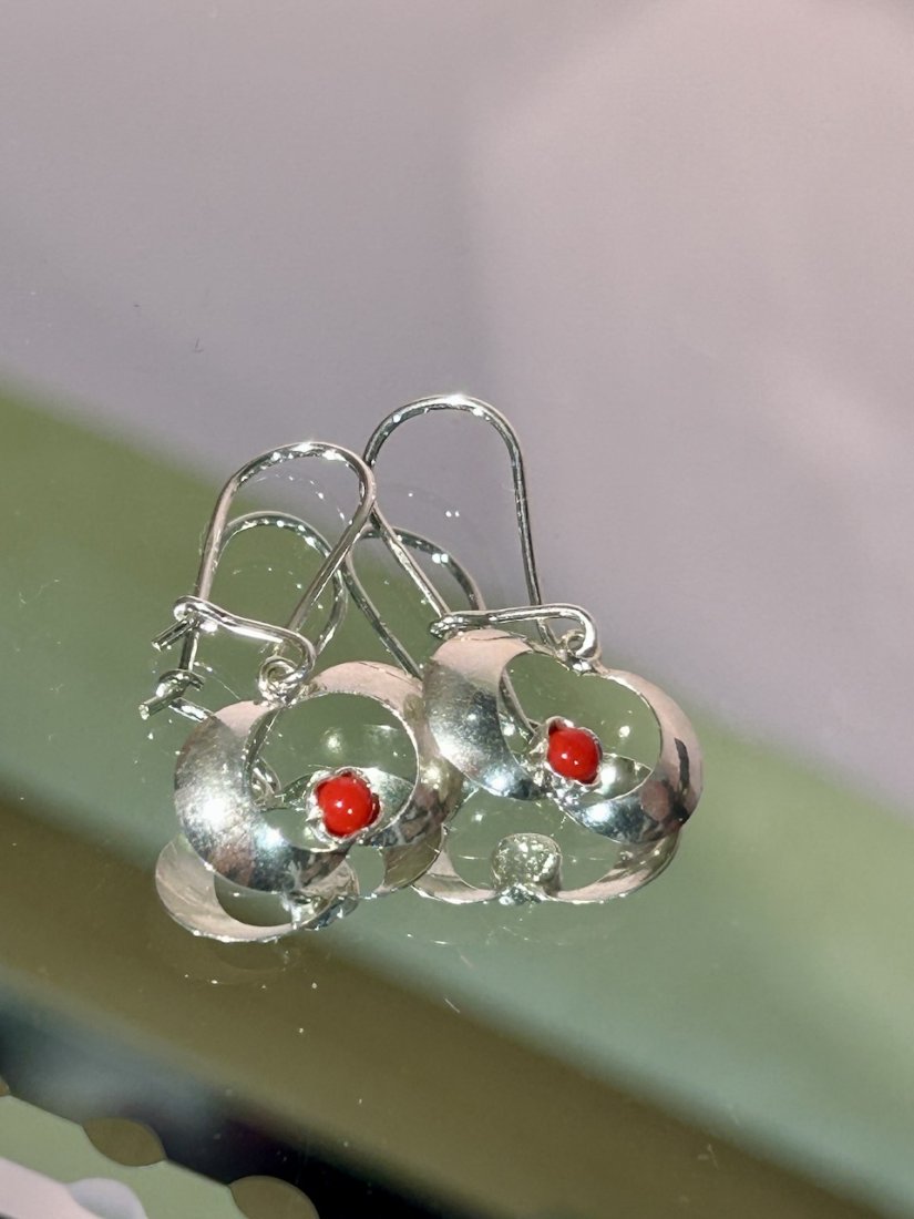 Kolczyki ze srebra. Jabłuszka z koralikiem. PRL.
