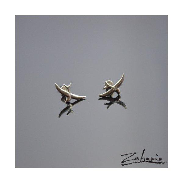 Wykonane ręcznie ze srebra kolczyki w kształcie jaskółek. Sztyft wykonany ze srebra.
