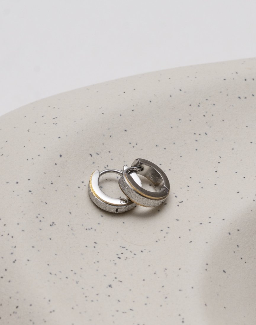 Te eleganckie kolczyki ze stali nierdzewnej w kształcie klasycznych kół przyciągają spojrzenia subtelnym połączeniem chłodnej powierzchni metalu i ciepłych, złotych akcentów. Ich forma jest prosta, lecz pełna harmonii – jak zamknięty krąg, w którym nowoczesność spotyka się z ponadczasową estetyką.