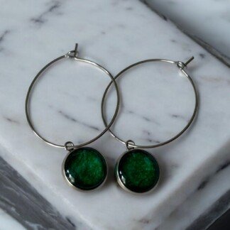 Szklane oczko chroni wzór papieru, który został zabezpieczony fiksatywą i utwardzony klejem UV, dzięki czemu kolczyki zachowują piękny wygląd przez długi czas.
