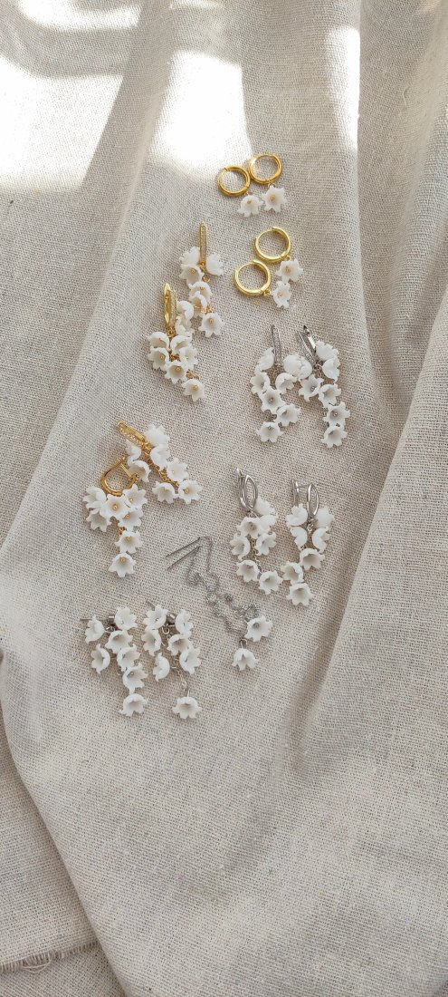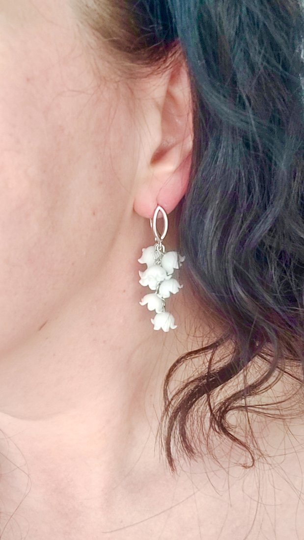 Odkryj magię wiosny zaklętą w biżuterii. Te wyjątkowe kolczyki w formie gałązek konwalii to kwintesencja delikatności i rzemieślniczej pasji. Każdy dzwoneczek został uformowany przeze mnie ręcznie z profesjonalnej glinki polimerowej (modelina Cernit), co nadaje im niesamowity realizm.