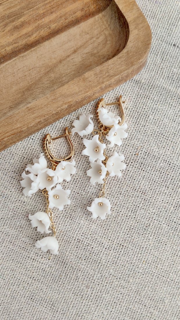 Przenieś się do wiosennego ogrodu z tą wyjątkową, artystyczną biżuterią. Te długie, niezwykle kobiece kolczyki w kształcie konwalii to efekt wielogodzinnej, precyzyjnej pracy ręcznej. Każdy najmniejszy dzwoneczek został uformowany przeze mnie z profesjonalnej glinki polimerowej (Cernit) – bez użycia form i odlewów.