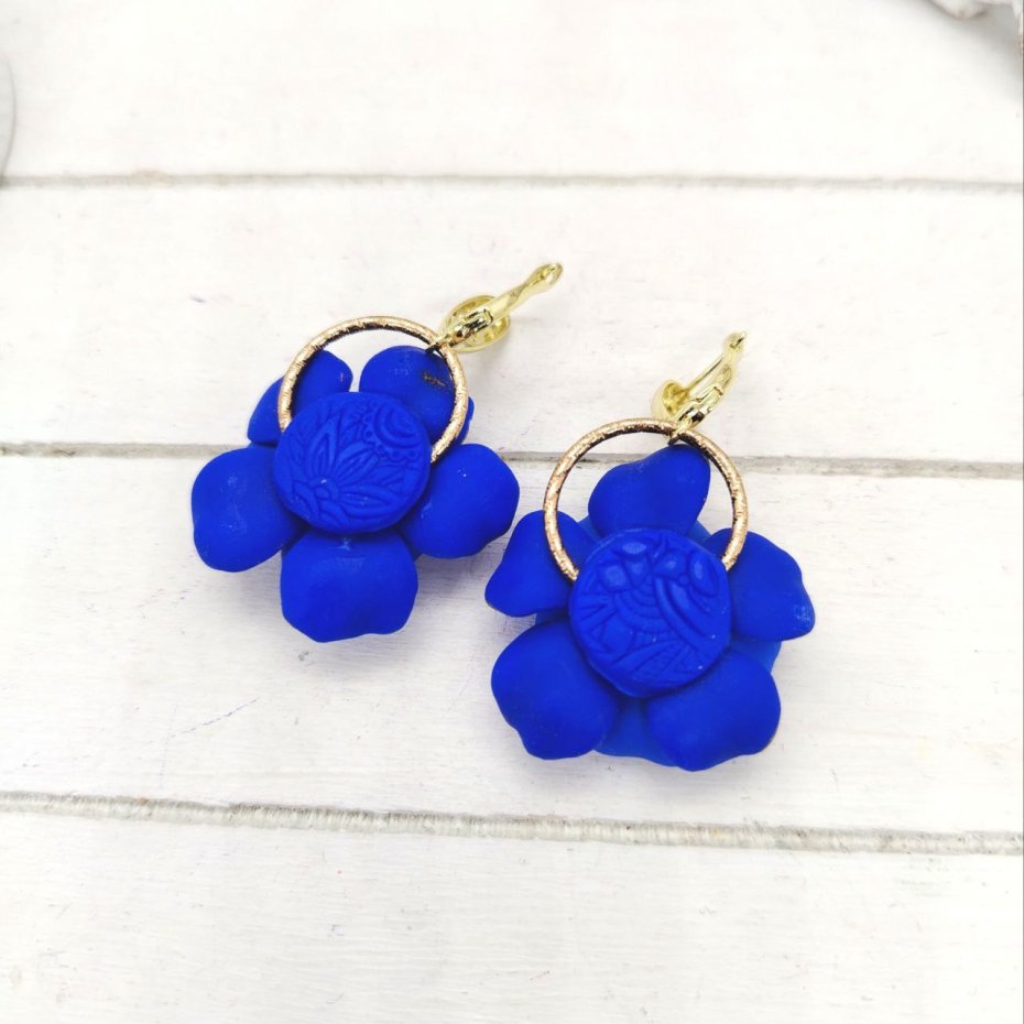 Kolczyki wykonane ręcznie z polimerowej gliny w kolorze królewskiego błękitu.