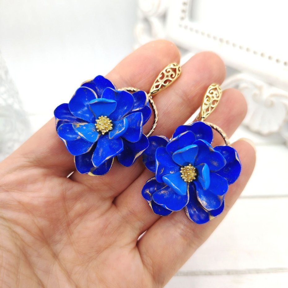 Tagi: #biżuteria dla kobiet, #biżuteria kwiatowa, #niebieskie kolczyki, #rękodzieło artystyczne