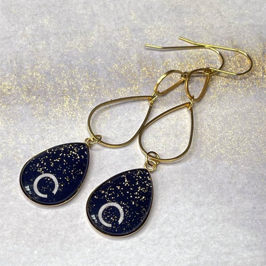 Tagi: #błyszczące kolczyki, #długie kolczyki, #granatowe kolczyki, #wieczorowe kolczyki