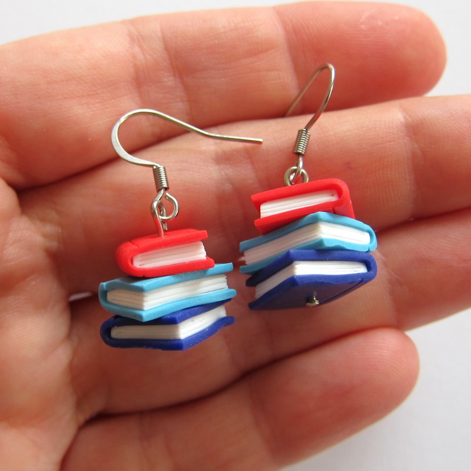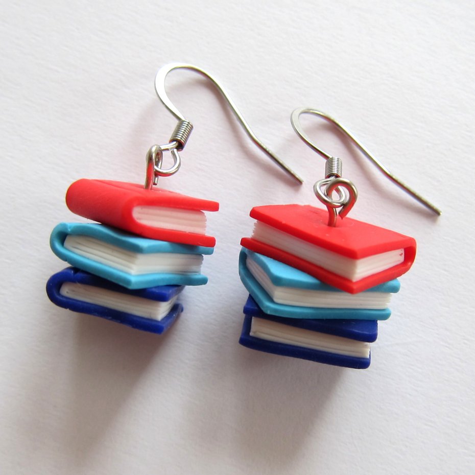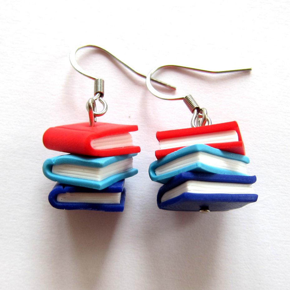 Zabawne kolorowe kolczyki wykonane ręcznie z masy termoutwardzalnej Fimo. Długość kolczyków to 1,5 cm (3,5 cm z biglami). Bigle wykonane są ze stali chirurgicznej. Kolczyki świetne na prezent. Mogę je wykonać także w innych, wybranych przez Ciebie kolorach.