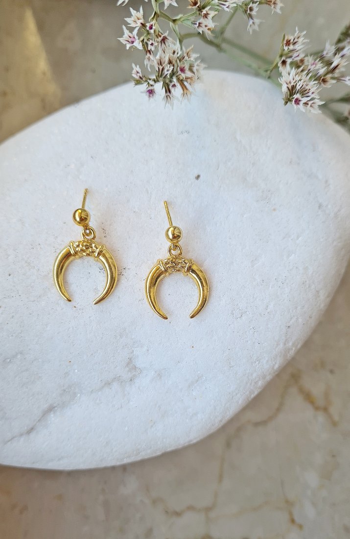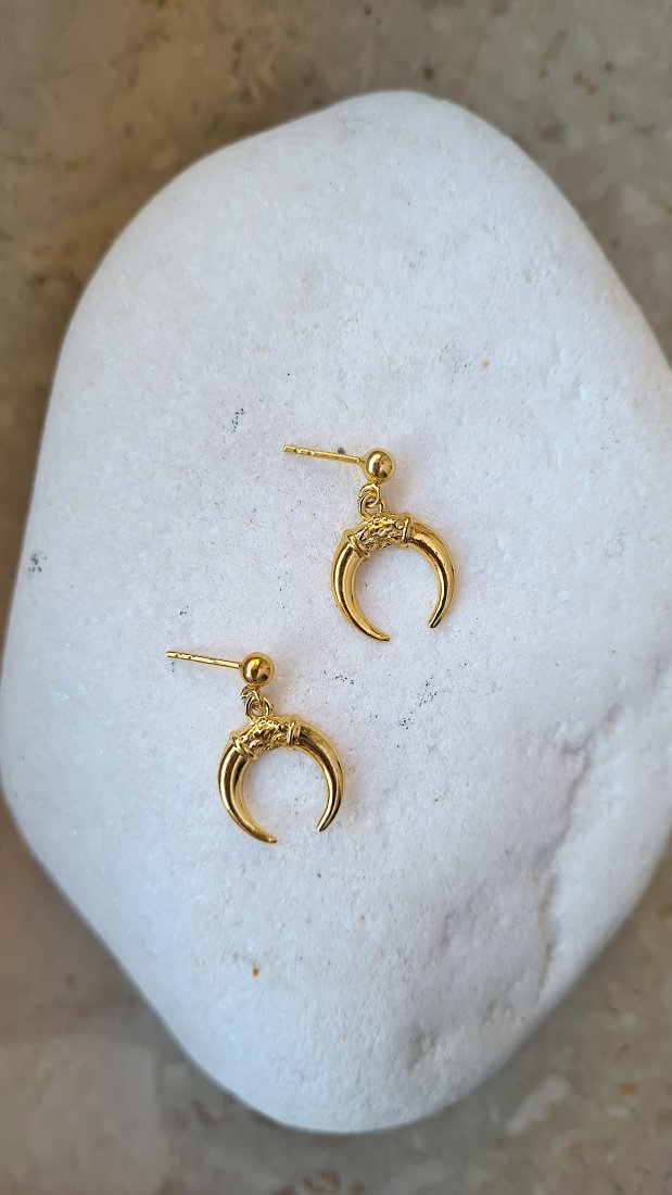 Kolczyki wykonane ze srebra 925 pokrytego 24 kt złotem. Zapinane na sztyft.