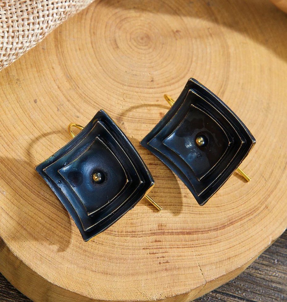 K6747 Niezwykle efektowne minimalistyczne kolczyki granatowe kwadraty.