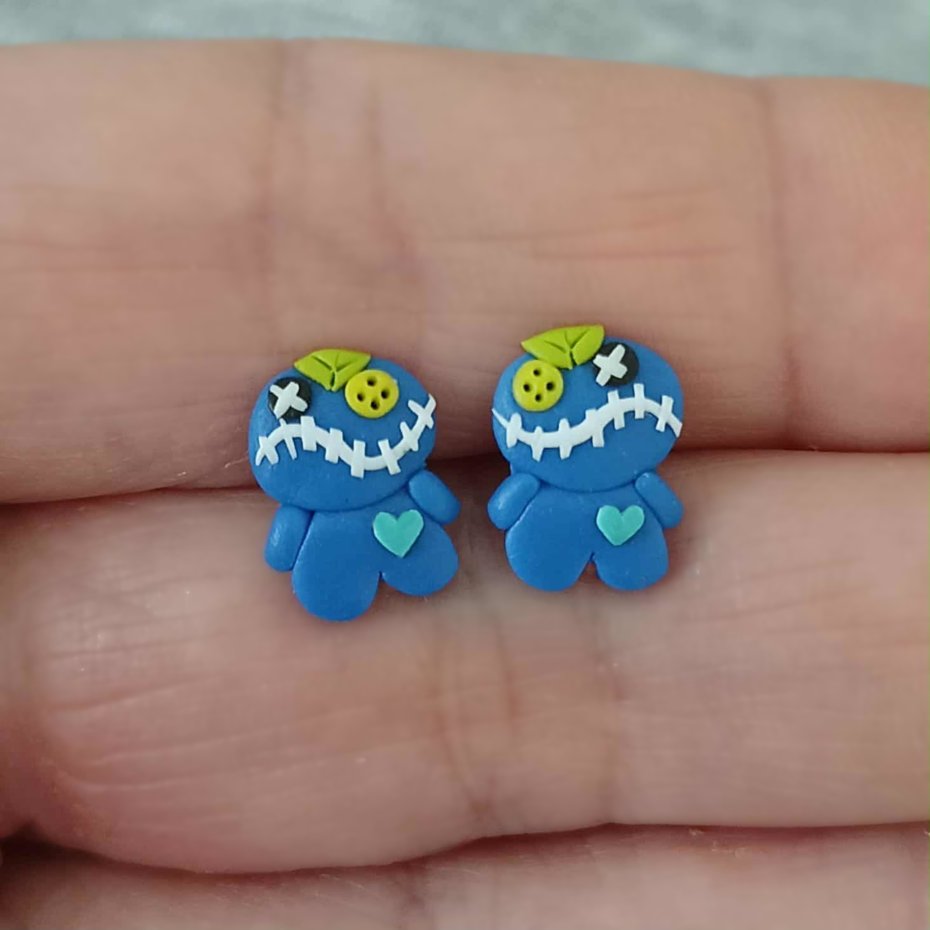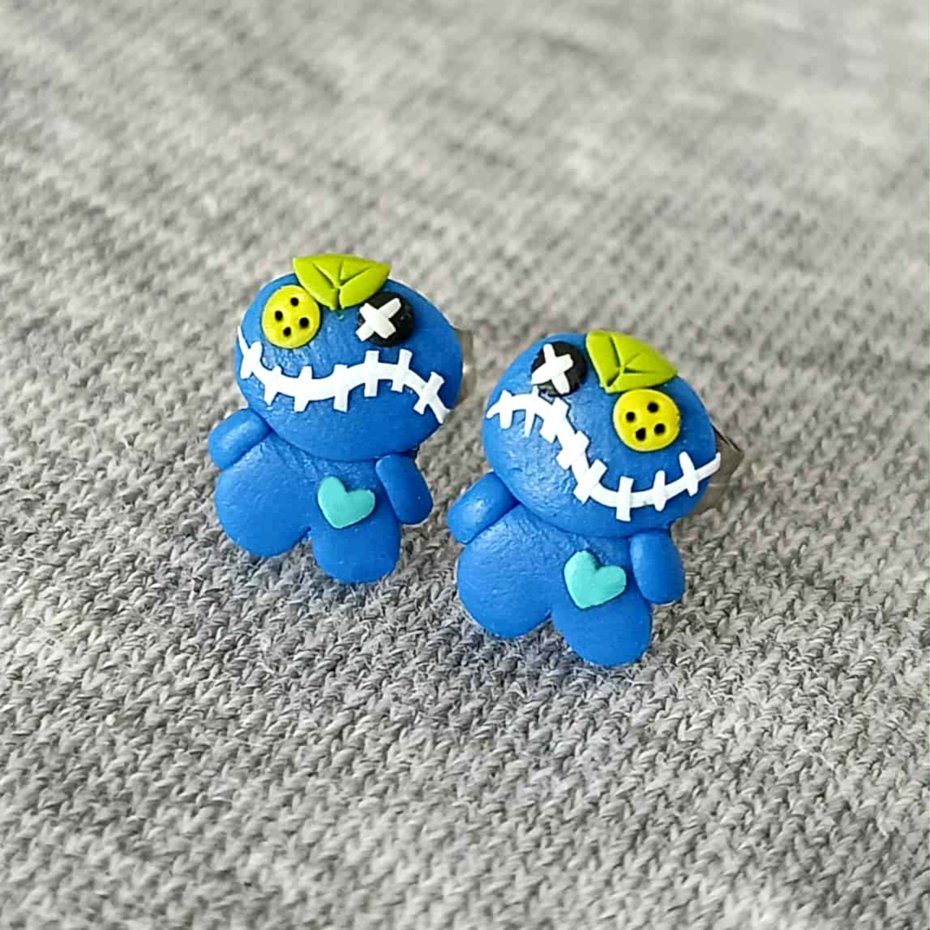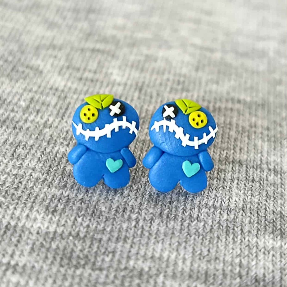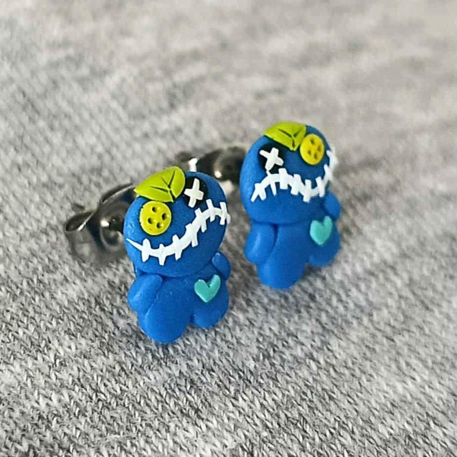 Ręcznie robione kolczyki w kształcie niebieskich laleczek voodoo – idealne na Halloween!