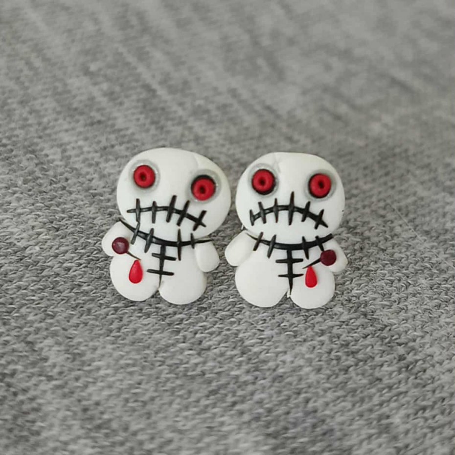 Ręcznie robione kolczyki w kształcie niebieskich laleczek voodoo – idealne na Halloween!
