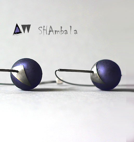Nowoczesne, czyste w swojej formie kolczyki wykonane z piaskowanego szkła weneckiego, oksydowanego srebra oraz srebrnych blaszek. Ich ozdobą są niebanalne, srebrne zatyczki, które są już moim znakiem firmowym:) Całkowita długość kolczyków - ok. 8 cm. Średnica kulki - 1,8 cm. Polecam:)