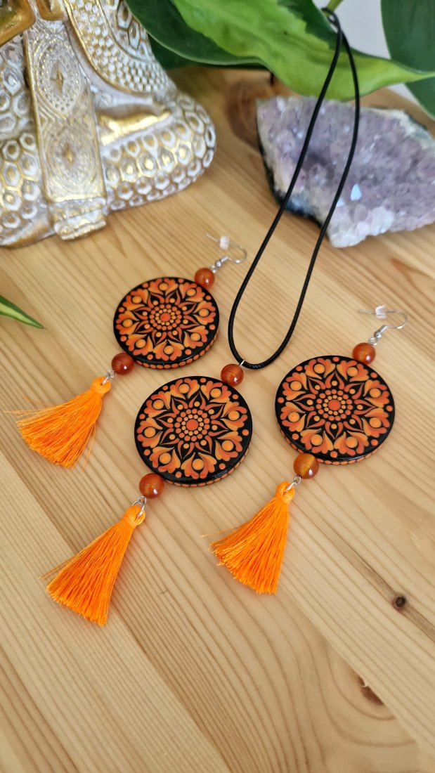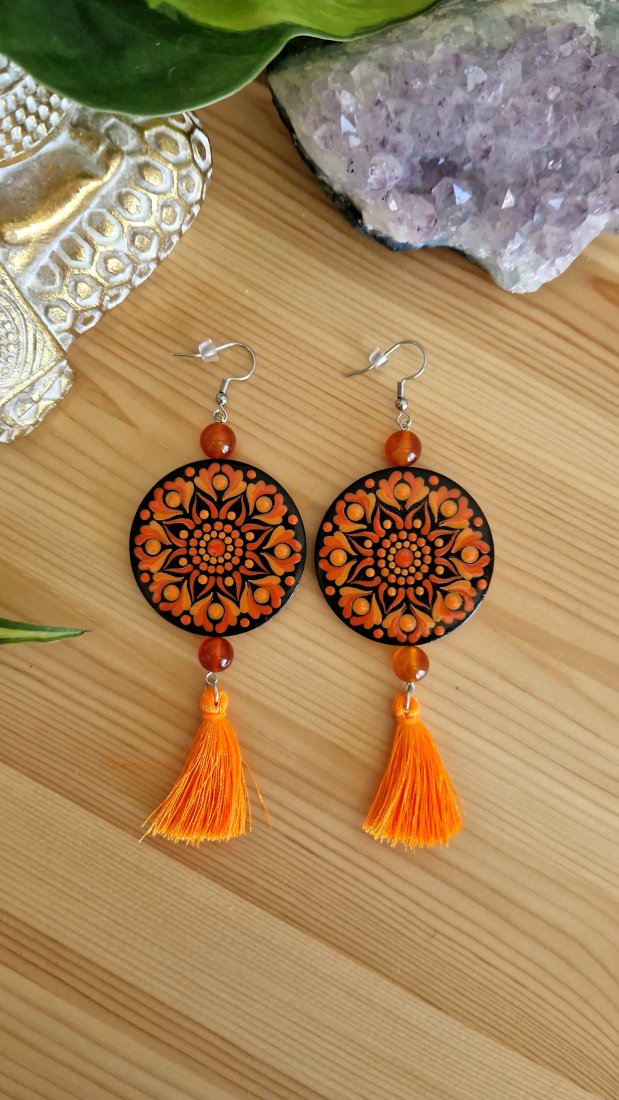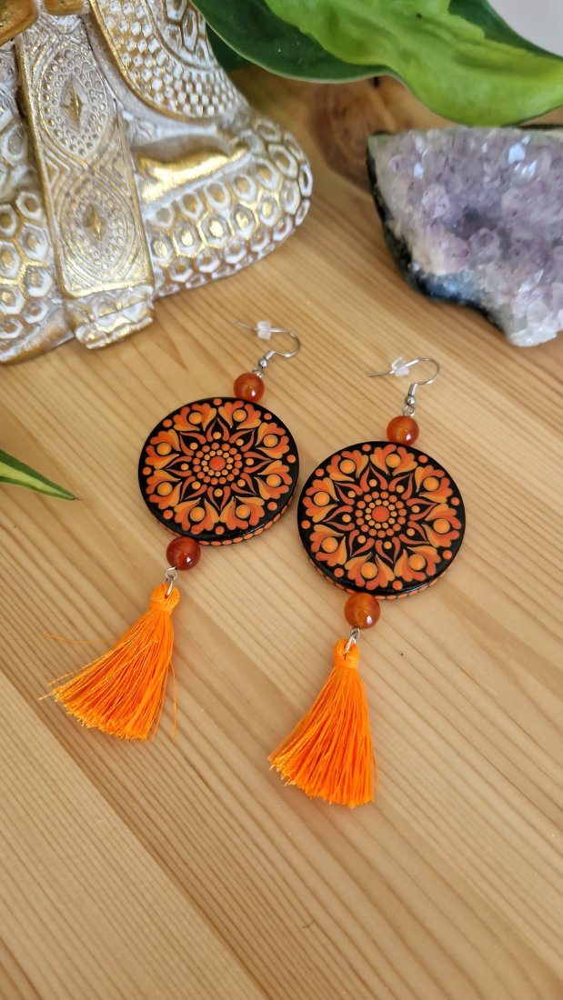 Tagi: #kolczyki czakra sakralna, #kolczyki pomarańczowe, #kolczyki ręcznie malowane, #kolczyki z karneolem
