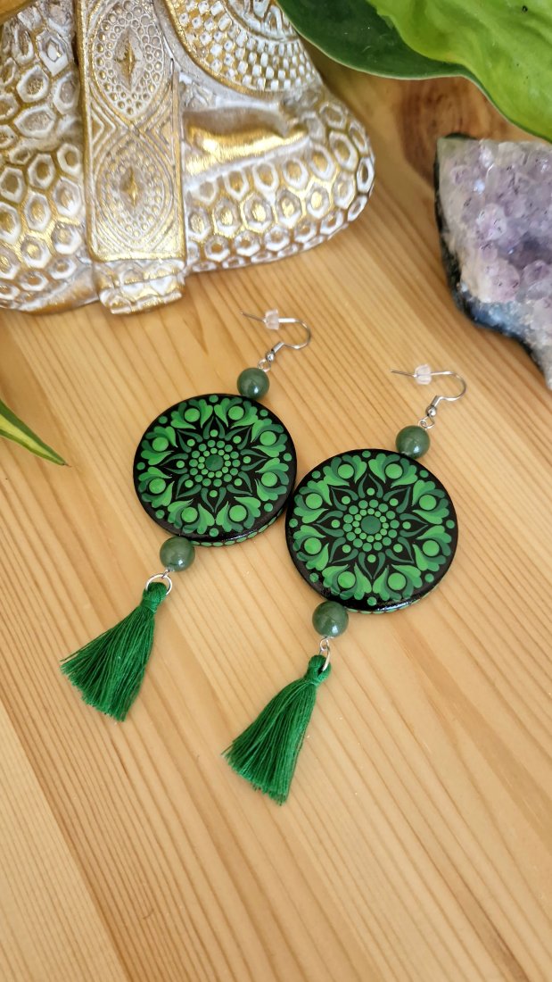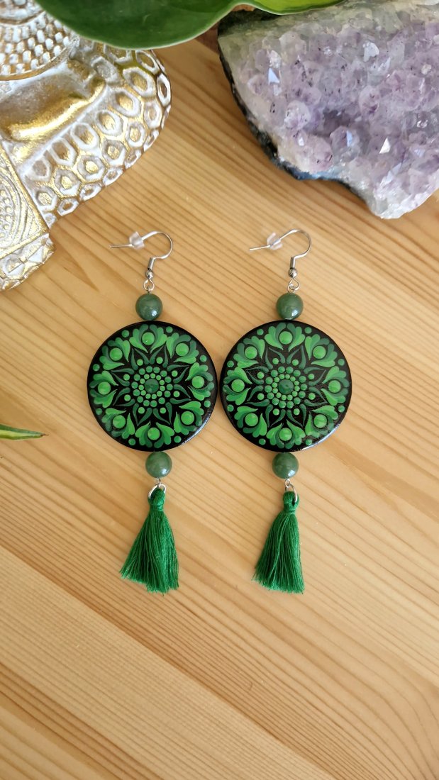 Tagi: #czakra serca kolczyki, #kolczyki ręcznie malowany, #kolczyki z awenturynem, #kolczyki zielone