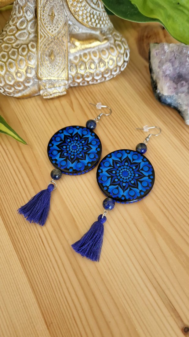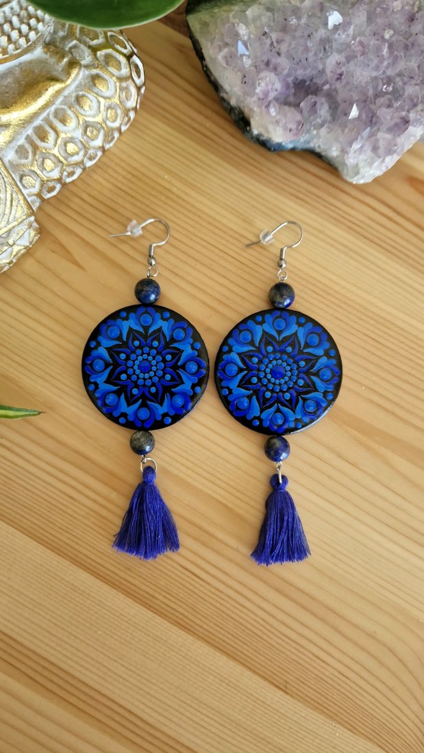 Tagi: #kolczyki indygo, #kolczyki lapis lazuli, #kolczyki ręcznie malowane, #trzecie oko kolczyki