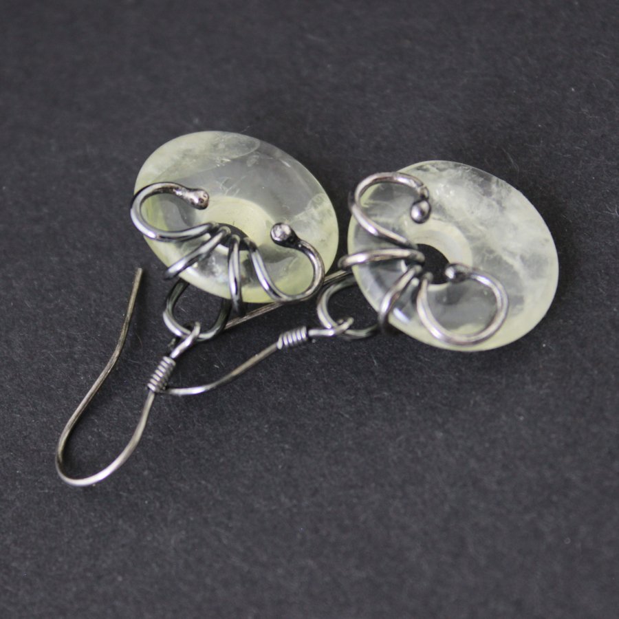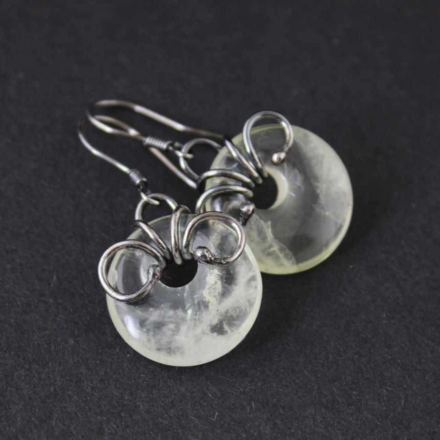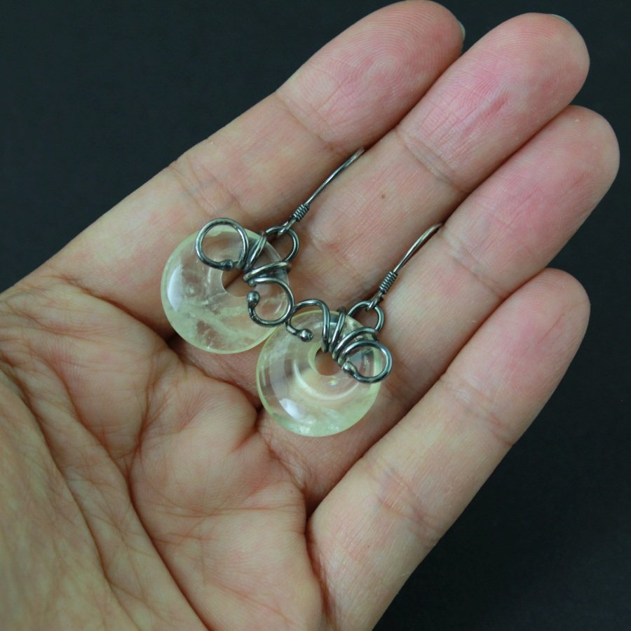 W dłoni spoczywają niczym dwa drobne krążki światła uchwyconego w ruchu – delikatne, jakby utkane z porannej mgły i promienia słońca, który dopiero budzi dzień. Kamień cytrynu, ledwo muśnięty żółcią, nosi w sobie wspomnienie świtu – tę subtelną poświatę, w której świat wydaje się jeszcze spokojny i niepewny swojego kształtu. To barwa rozcieńczonego miodu, przejrzystego bursztynowego szkła, w którym tańczy odrobina złamanej bieli.