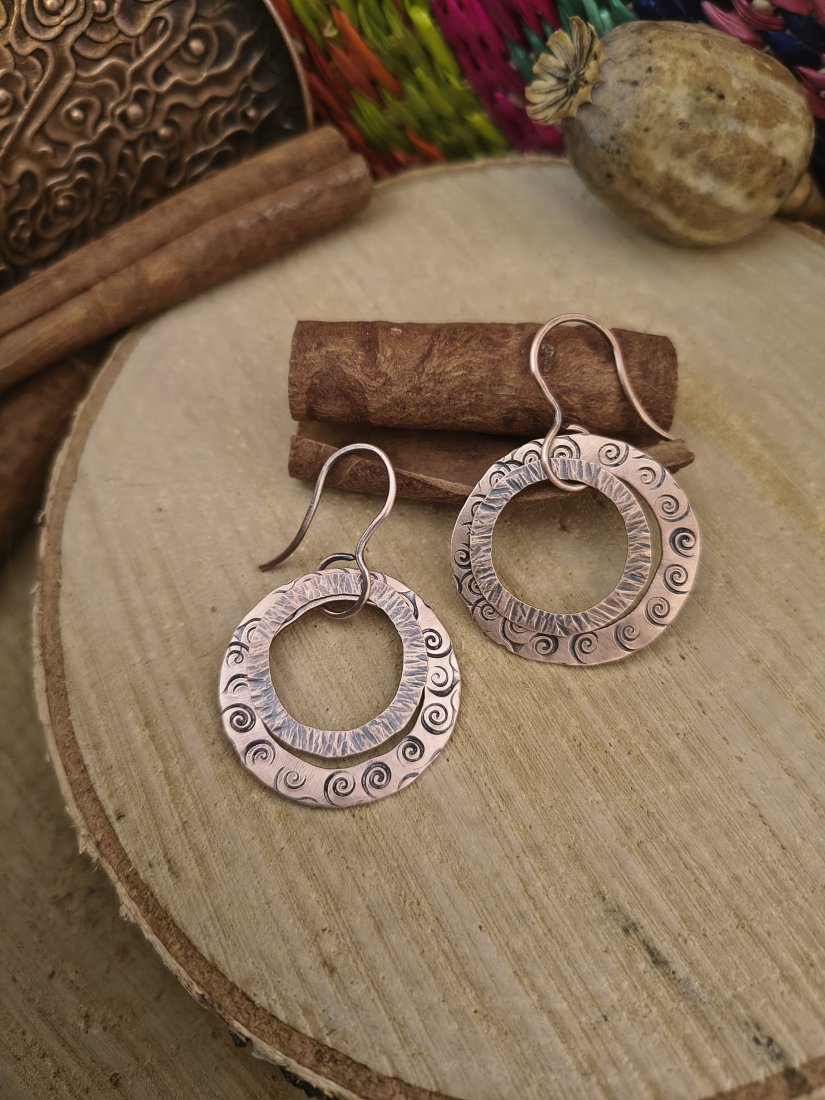 KOLCZYKI MIEDZIANE KOŁA PODWÓJNE