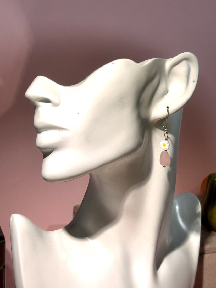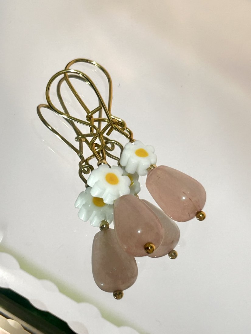 Urocze kolczyki z naturalnymi kamieniami i szkłem weneckim millefiori.