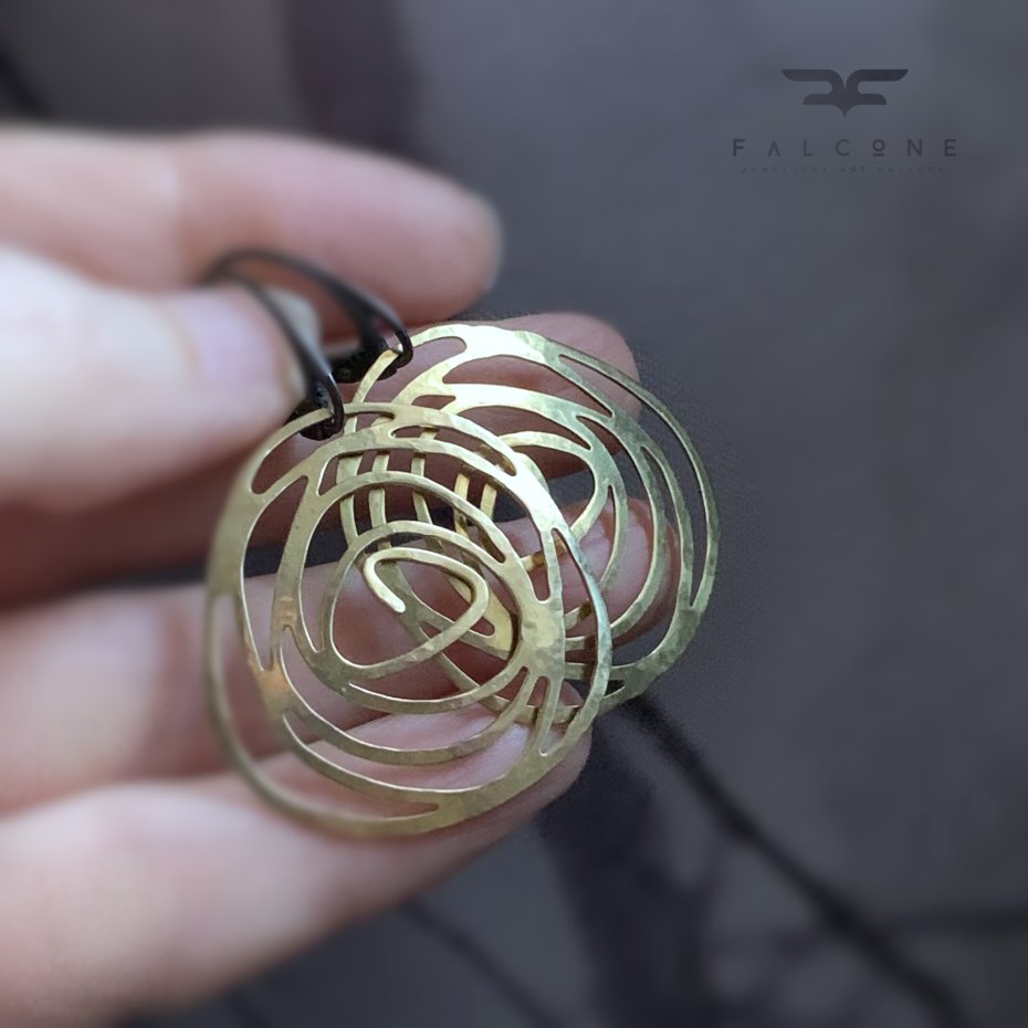 Kolczyki ze srebra i mosiądzu. Kwiatowy symbol zamknięty w dużej, efektownej, graficznej formie. Kolczyki łączące w sobie nuty nowoczesności i klasycznego romantyzmu. Róże kute z mosiądzu w kolorze złota, o wypukłym kształcie. Zawieszone na srebrnych biglach. Bigle angielskie ze srebra 925. Szerokość kolczyków to ok. 3 cm. Długość kolczyków to ok. 5 cm.