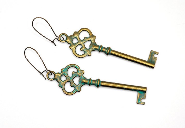 niewielkie kolczyki wykonane z metalu - w kolorze mocno postarzanego s...