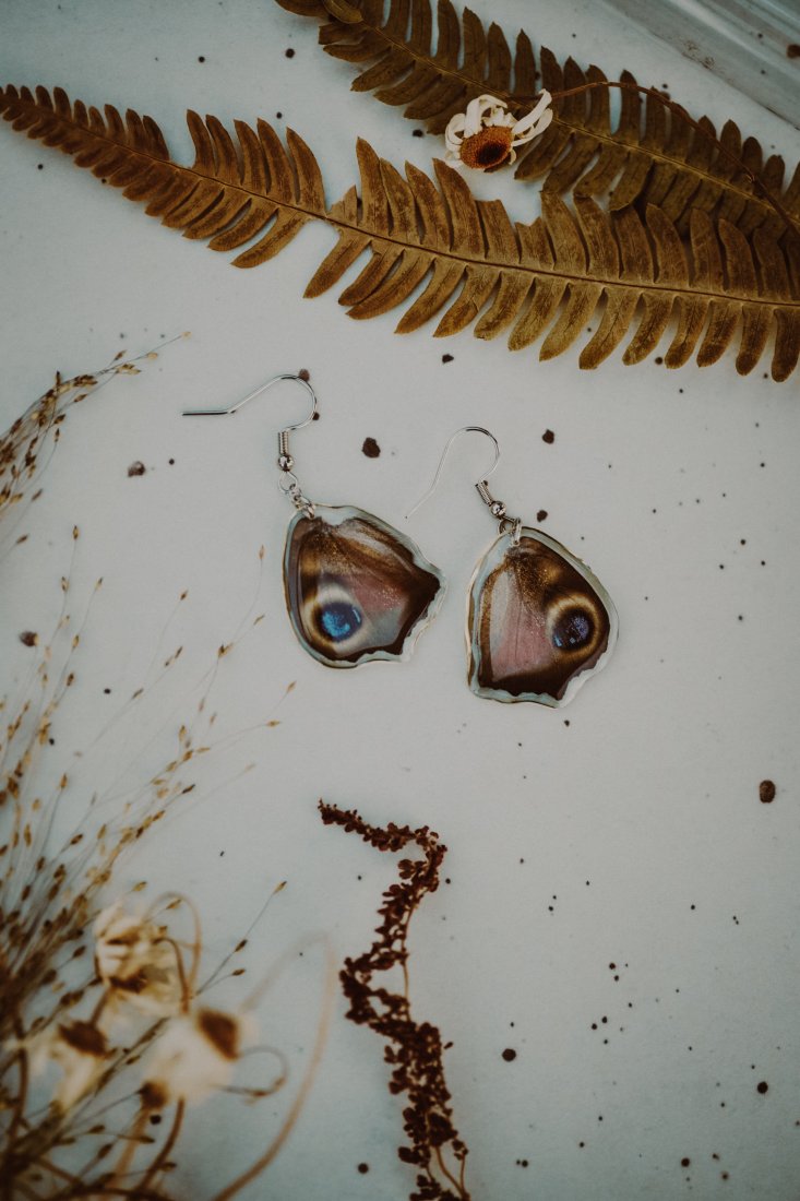 Skrzydła są zamknięte w krystalicznie czystej, twardej jak szkło żywicy jubilerskiej.